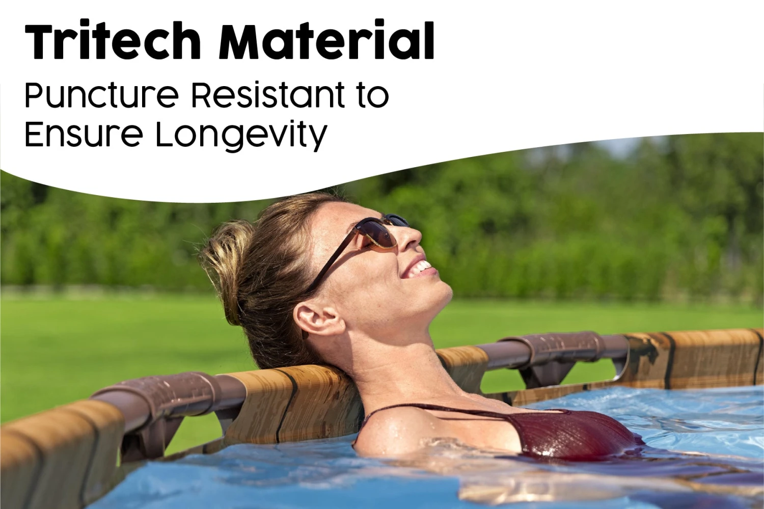 The sturdy Tritech® liner is made out of an ultra-durable 3-layer material that is reinforced for strength and puncture resistance. Tritech is 15% more tear-resistant, 33% more stretch-resistant and 83% more puncture-resistant than standard PVC, ensuring your above ground pool will last summer after summer.