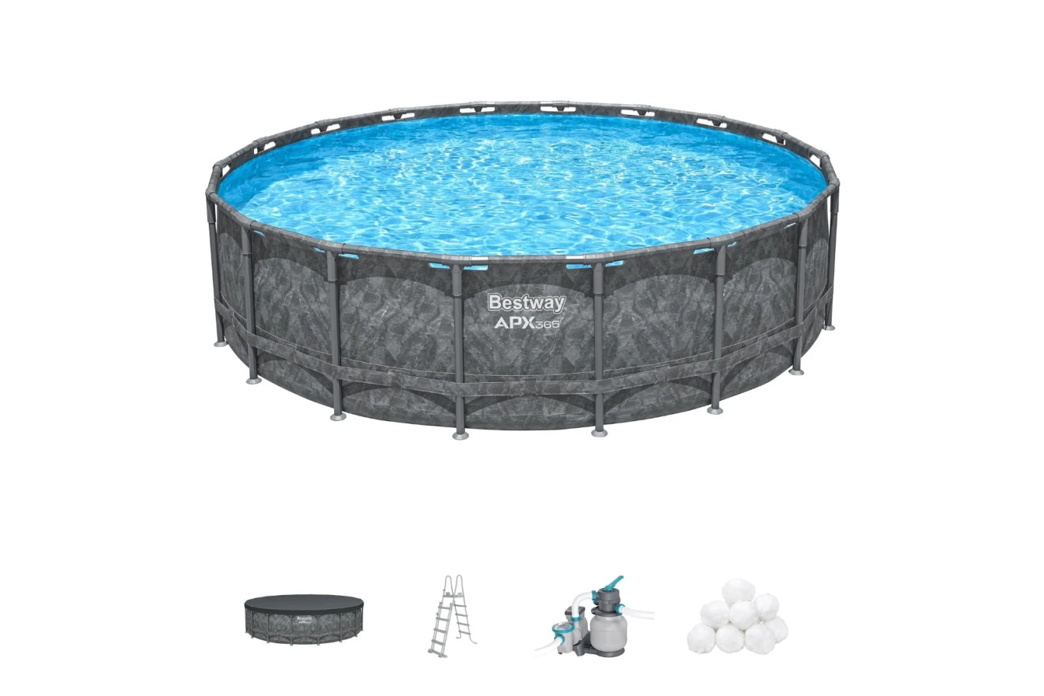 Turn your back garden into a swimming oasis with the innovative, year-round Bestway® APX 365™ 18ft round pool set. Created by industry veterans who are experts in durability, APX 365 pools are built with a combination of long-lasting materials and groundbreaking weather defence technology so you can make memories with your family for years to come! ///