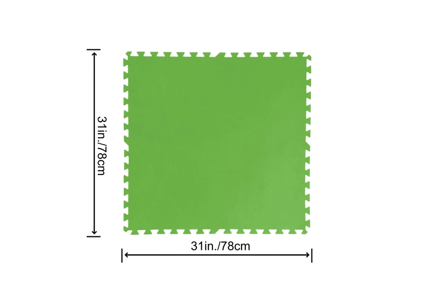 - The interlocking foam floor mats measure 31″ (78cm) x 31″ (78cm) and connect together to cover 5.47sq. m (58.90sq. ft); extra packs for larger areas can be purchased
