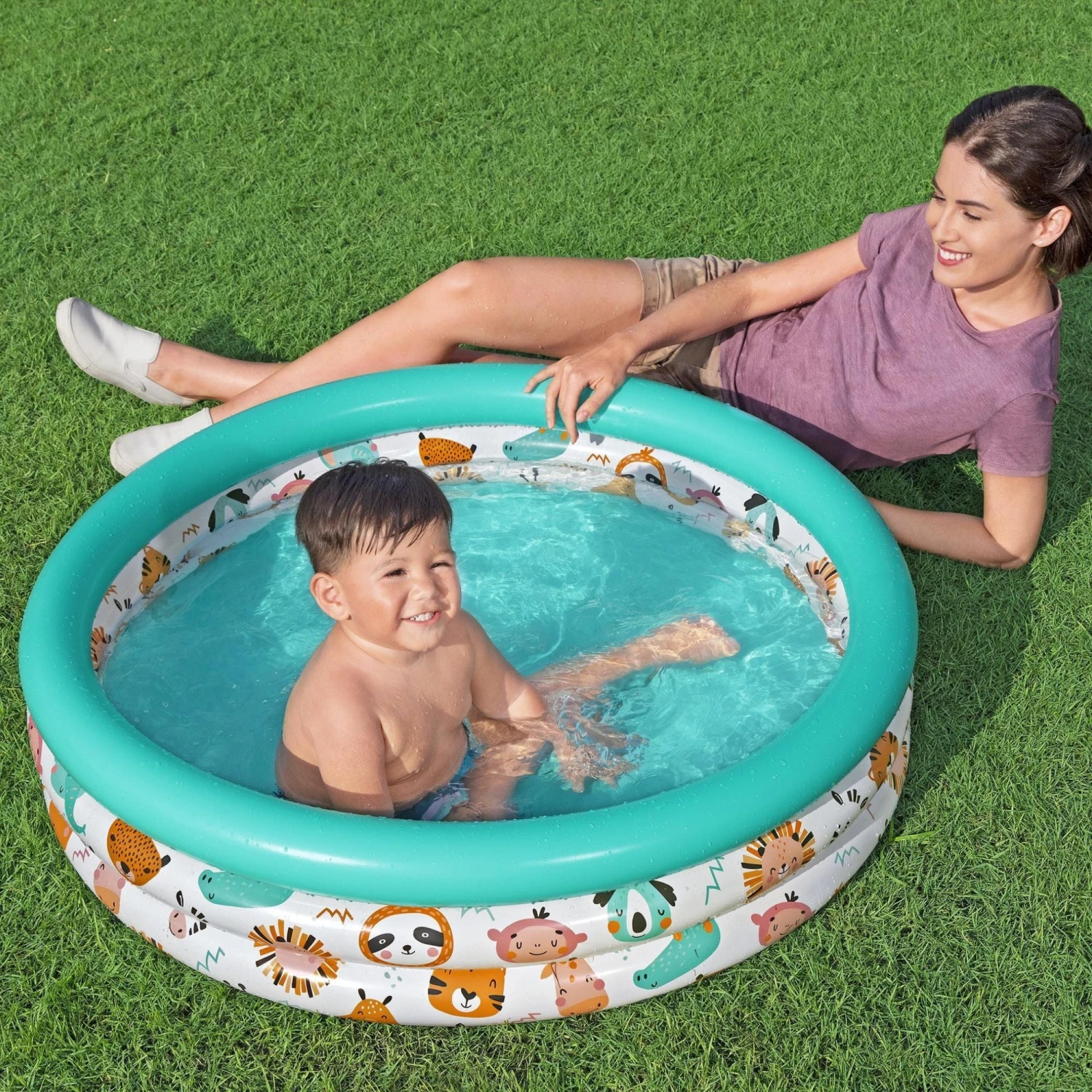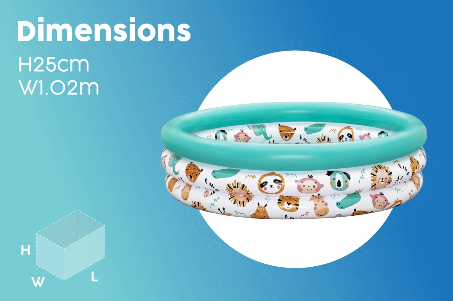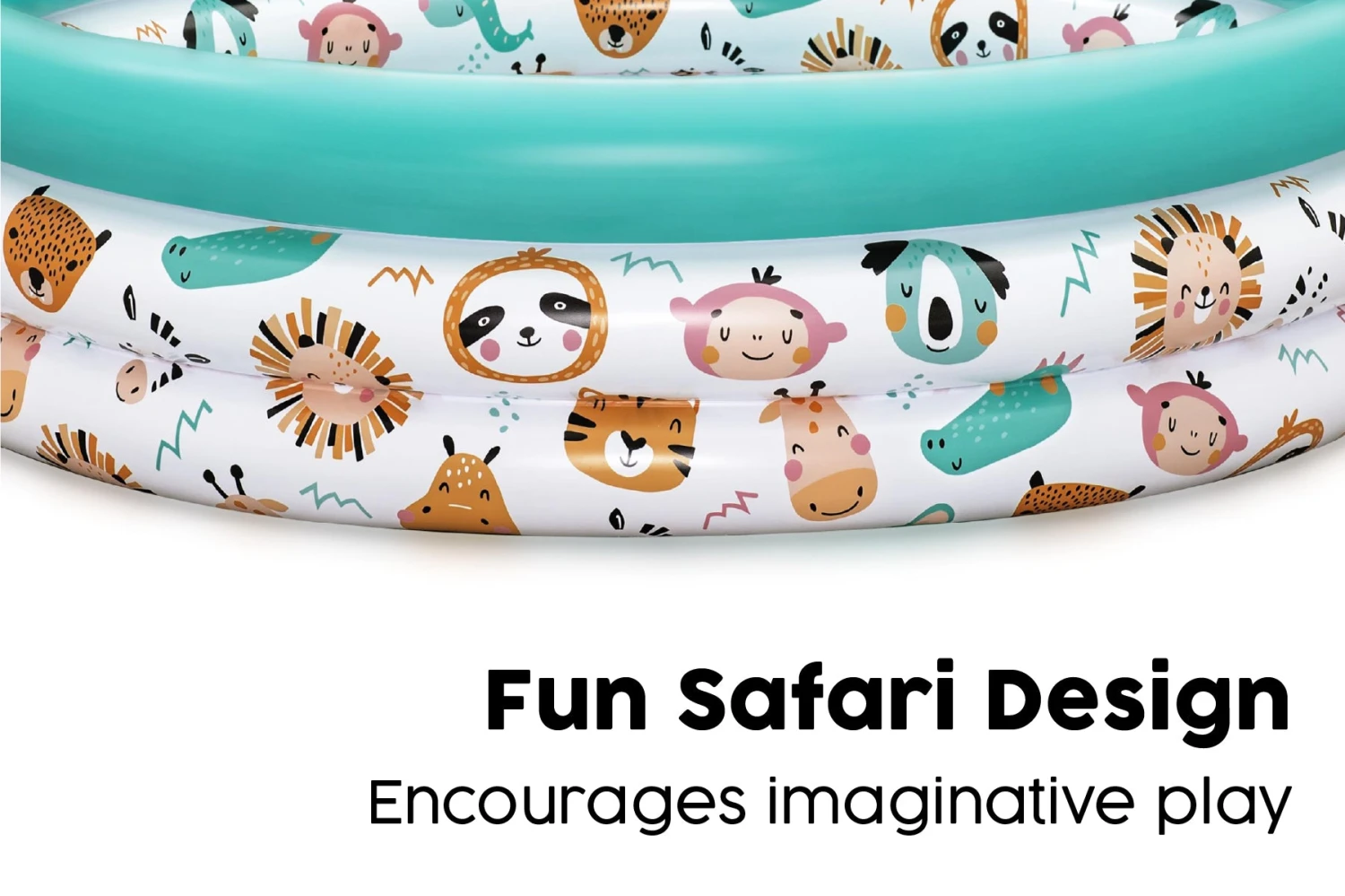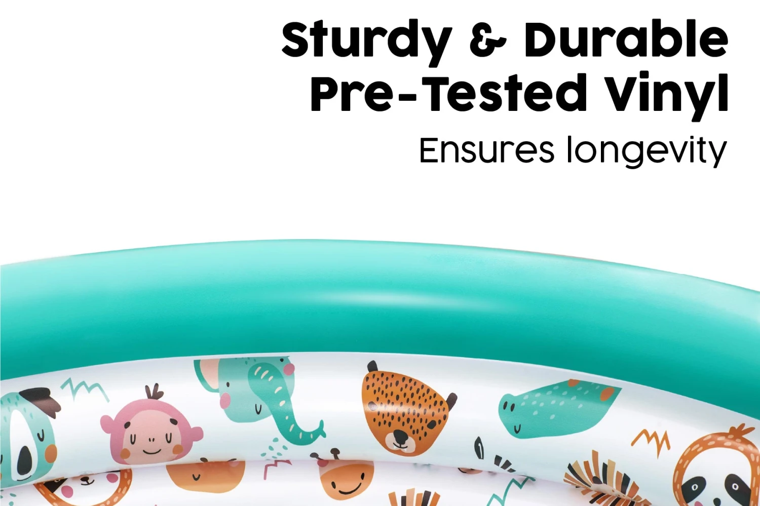 - A Kid’s pool made from quality tested vinyl and constructed with three equal inflatable rings with a fun animal design; the 3-ring construction increases stability and reduces the risk of the sides buckling