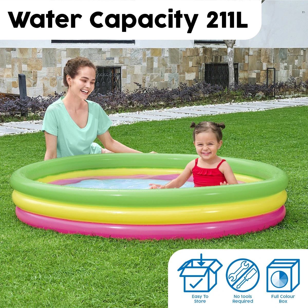 - Holds up to 317L of water, with dimensions of 1.52m (diameter) x 30cm (height).