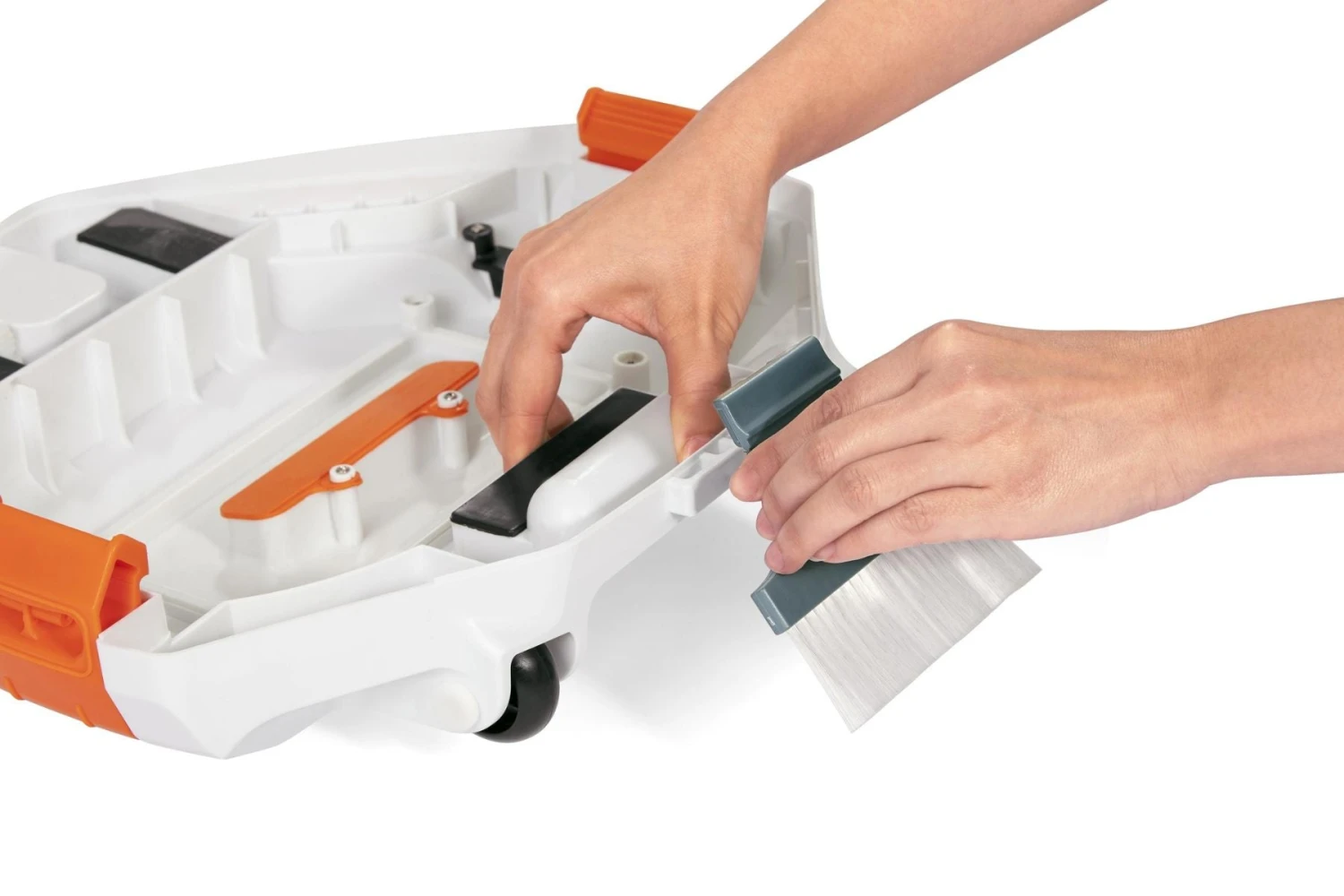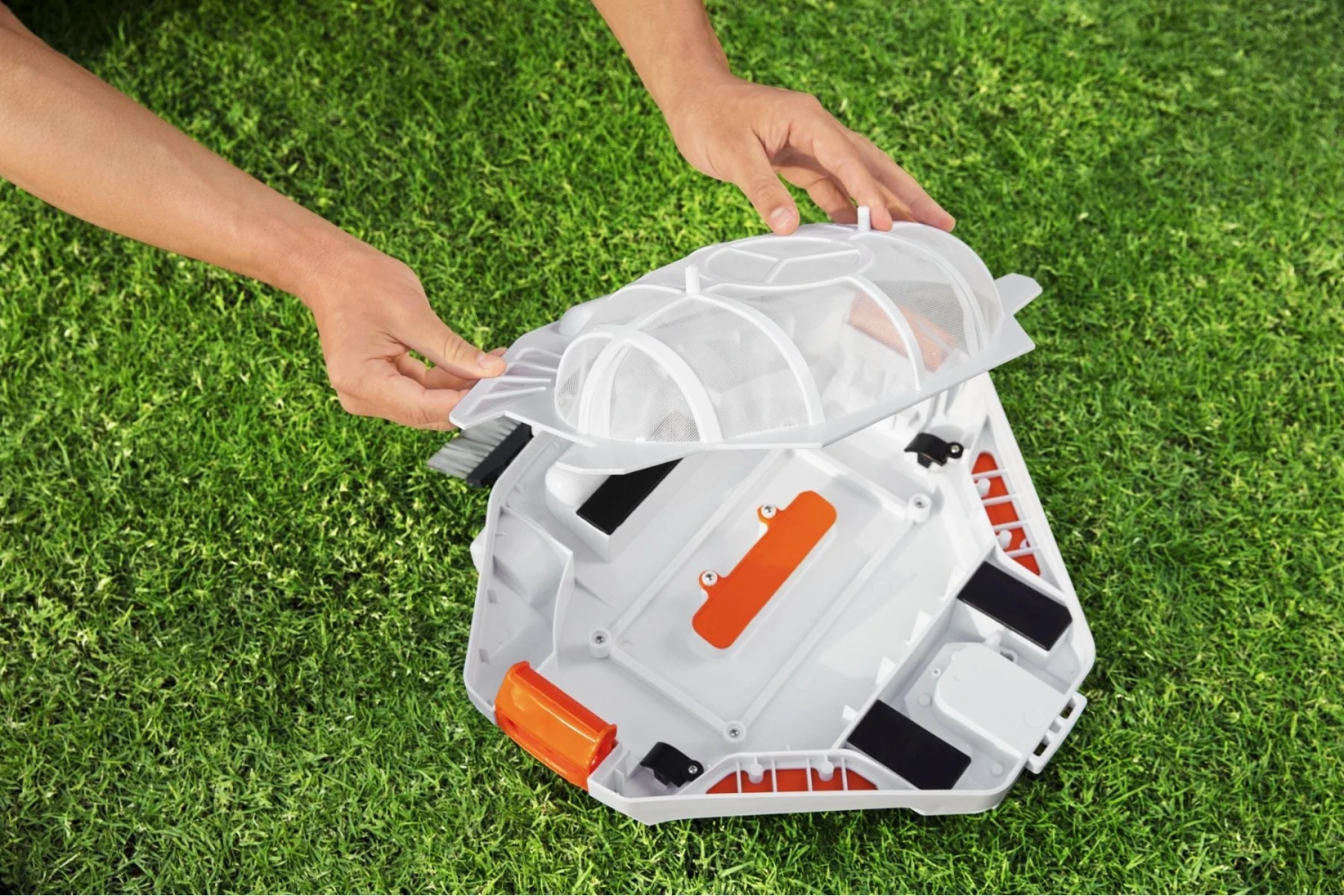 - An underwater robot vacuum swimming pool cleaner with built-in water sensors that activate the device when fully submerged in water and deactivate when water level is insufficient for motor protection