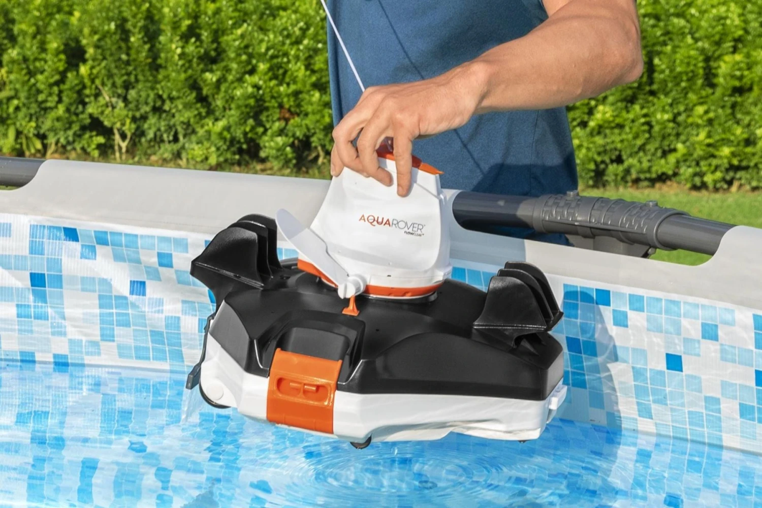 - The Aquarover Automatic Pool Cleaning Robot is ideal for keeping flat bottomed pools pool water clean and clear; comes with one Aquarover and one charging cord