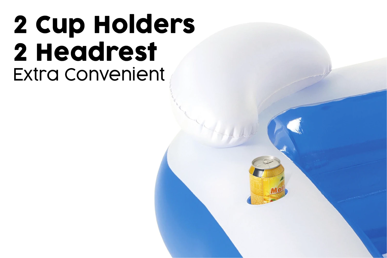 - Features built-in seats and and 2 cup holders for the ultimate comfort. An ideal-sized pool to cool off on a hot summer’s day! The built-in seats provide better stability while splashing around with your kids