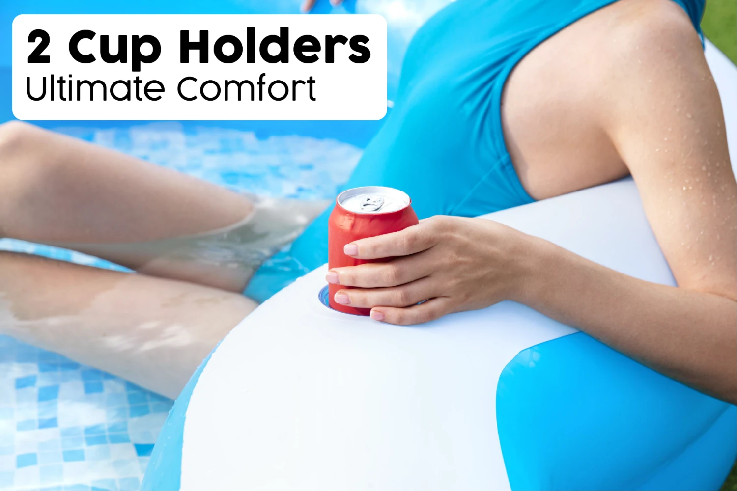 - Features curved edges for comfortable sitting and 2 cup holders for drinks and snacks. The soft and comfortable design offers plenty of space for kids and adults to splash, play, and relax together on a hot day!