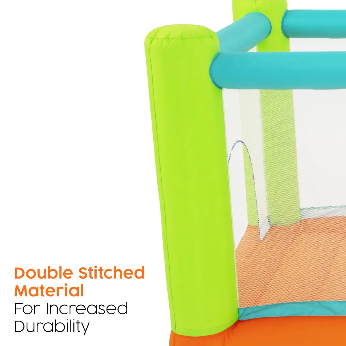 - Bounce all day long with our outstanding bouncy bouncer that inflates in 2 minutes! Provides multiple of different activities to provide endless hours of play to your kids! Suitable to for outdoor and indoor play