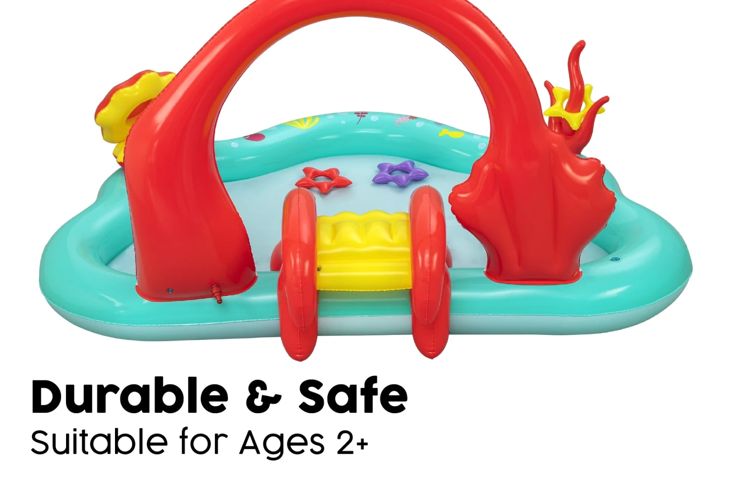 - Welded into bottom of the pool for extra safety and security, kids can land and splash water away