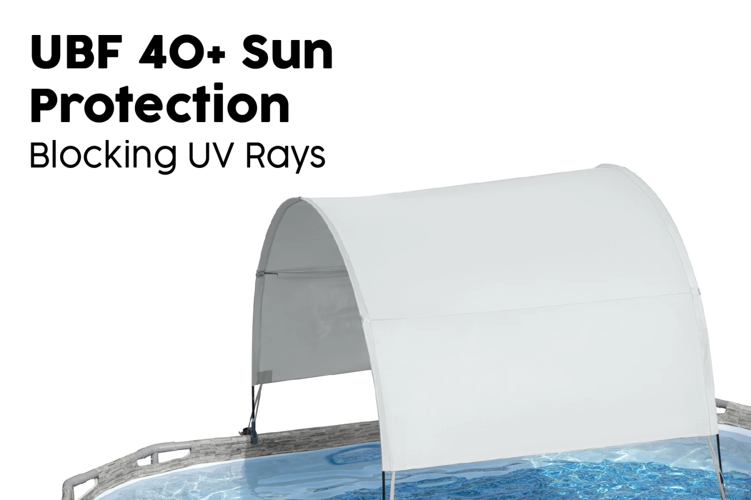 - Block the sun’s harmful rays this summer with our Pool Canopy that offers UPF 40+ sun protection for over your pool, so your family and friends can stay cool all summer long without the worry of harsh UV rays