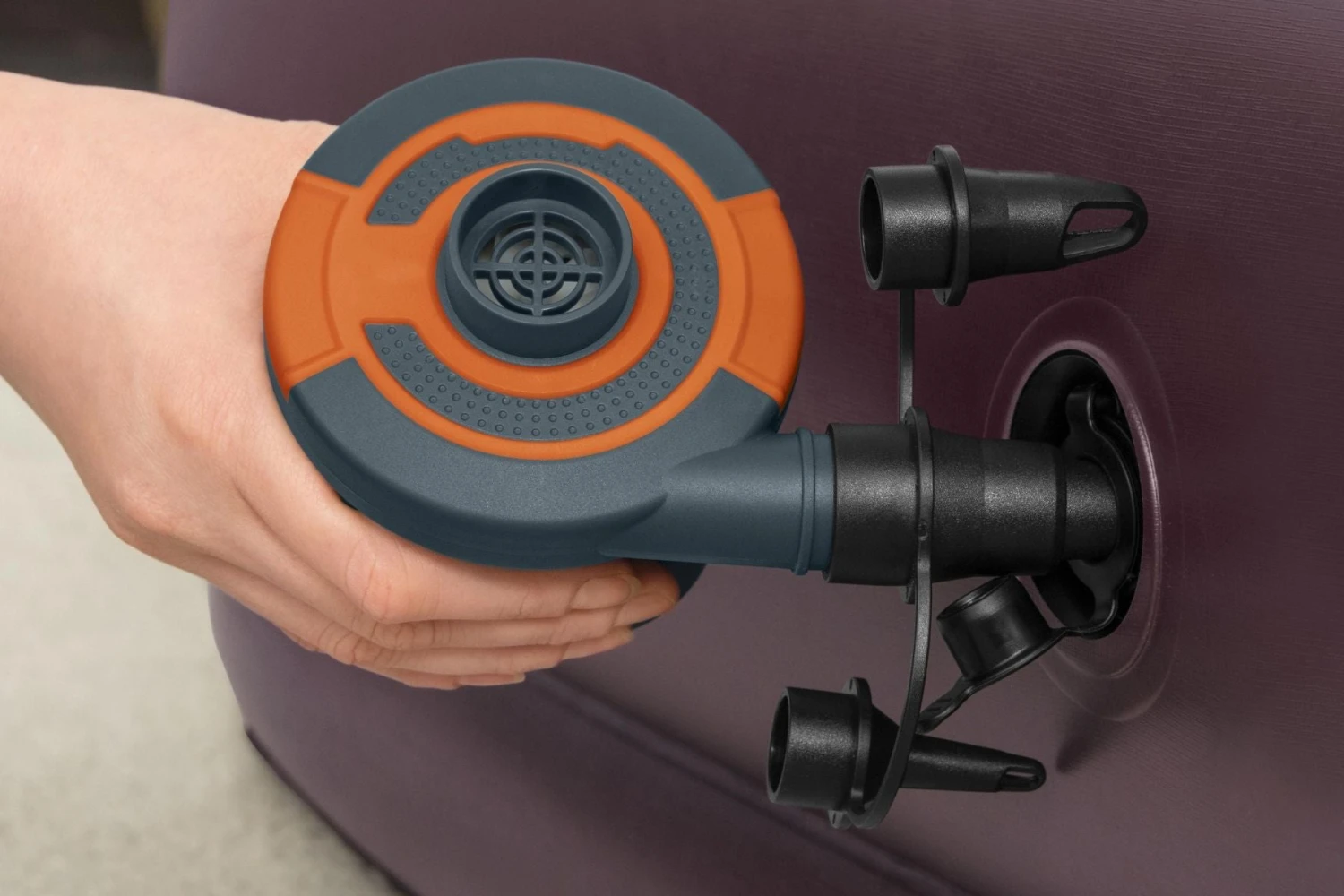 - It is an electric pump for inflatables that is portable and easy to use at home or away; weighing just 389g