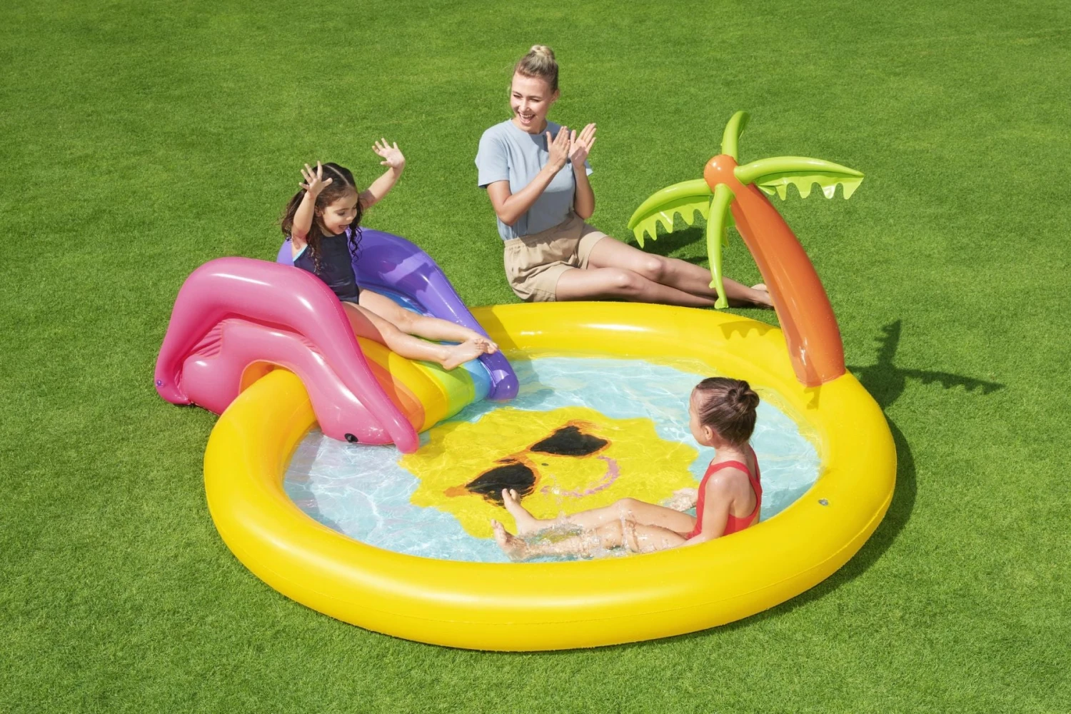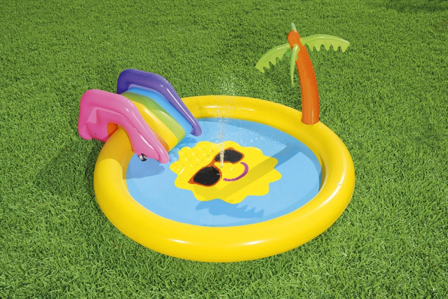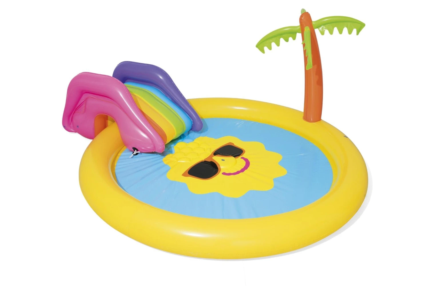 - The Bestway SunnyLand paddling pool play centre comes as a complete set; featuring pool, slide and a repair patch