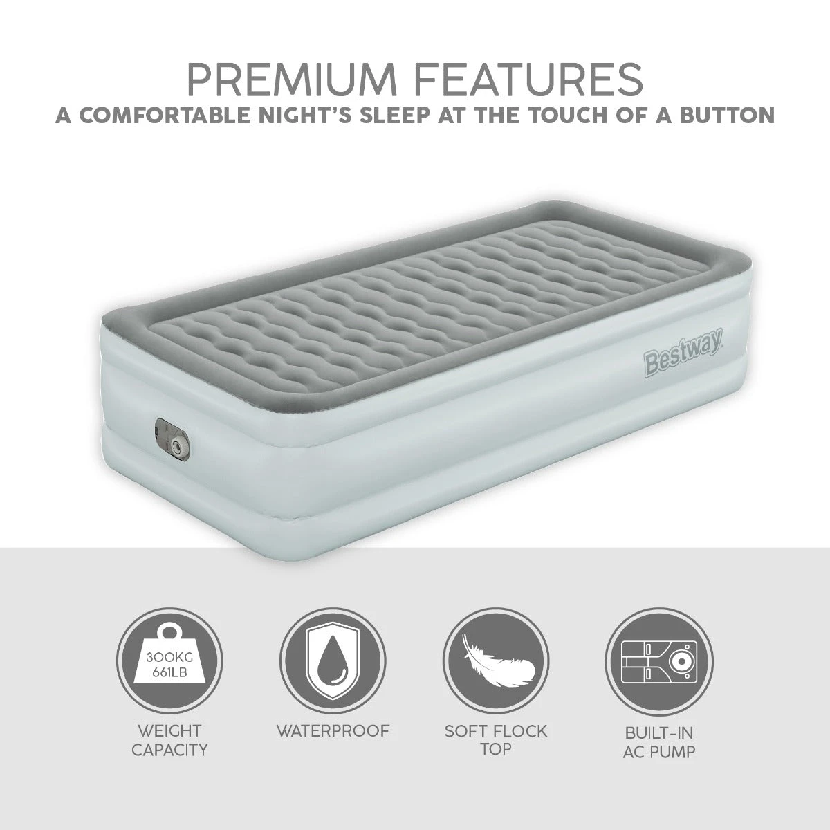 - Raised height Single Size airbed with premium technology and design to offer a more enjoyable and comfortable night’s sleep