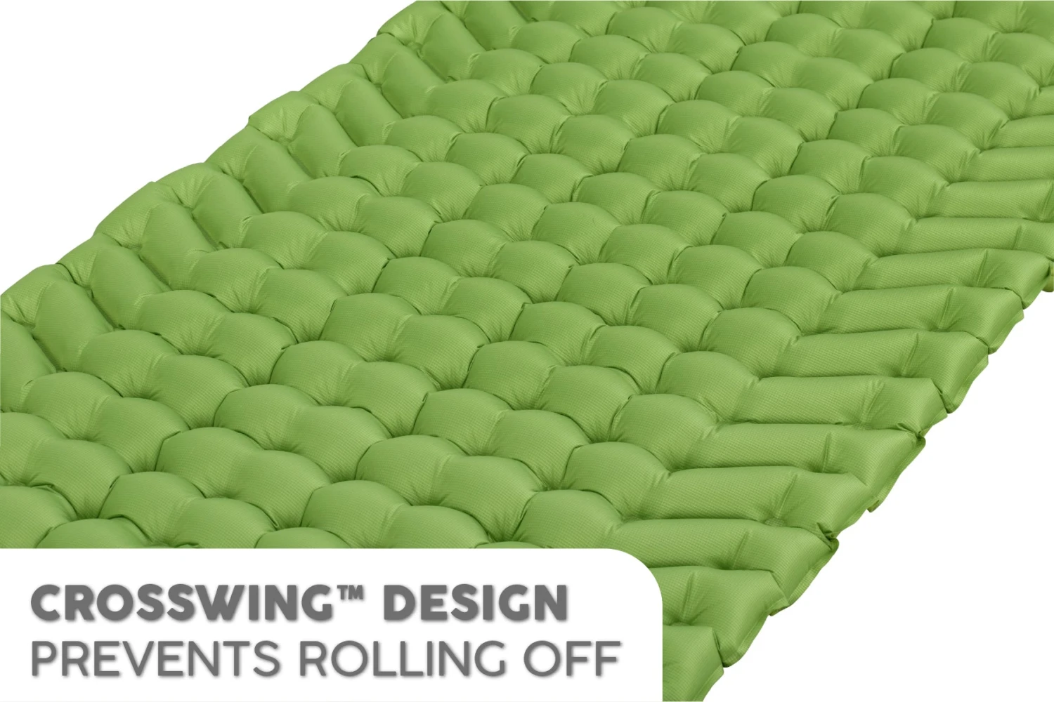 - The R Value of the sleeping pad is 1.3 ideal for cold, wet weather and CrossWing design. This innovative design features inclined air pockets for comfort and to prevent unexcepted rolling off