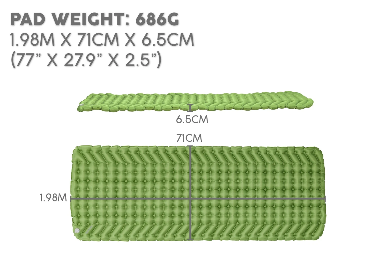 - This innovative air pad offers a compact and lightweight solution. This design fits in a regular-sized sleeping bag, making it an ideal size for you to keep in your backpack gear!
