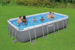 Bestway 13.6ft X 6.7ft X 48in Dark Grey Rectangle Power Steel Above Ground Pool Set