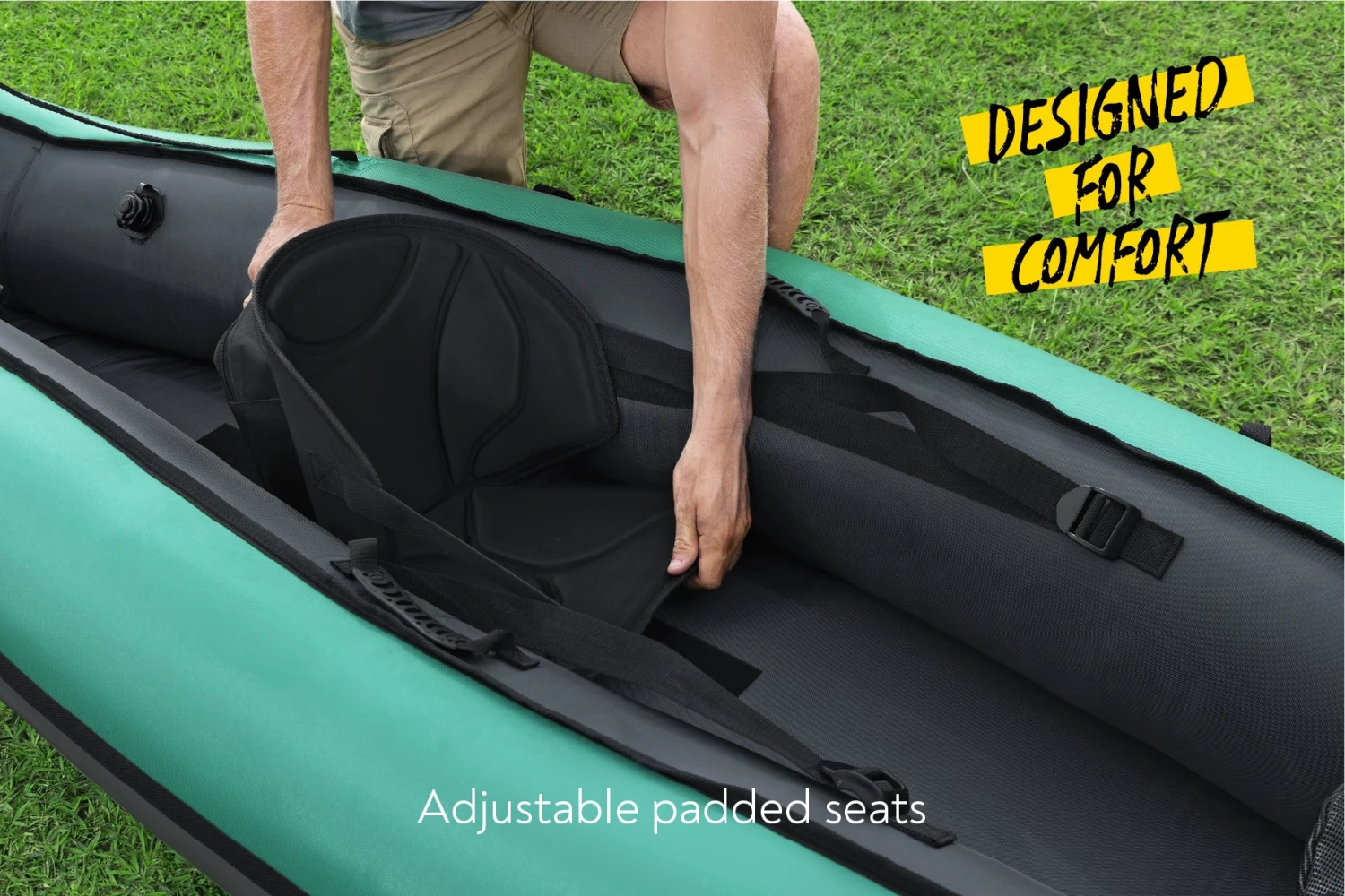 Built for the toughest adventurists in all water conditions, the premium nylon coating on the Ventura Elite X1 Kayak can withstand some of the toughest elements. The fabric is oil-proof, waterproof, and can endure the sun’s intense UV rays. The premium nylon coating is also puncture resistant and built to withstand the rough and often rocky waters of a river. This durable single inflatable kayak will help you manoeuvre down winding rivers, lakes, and through calm open waters or over the ebb and flow of waves.