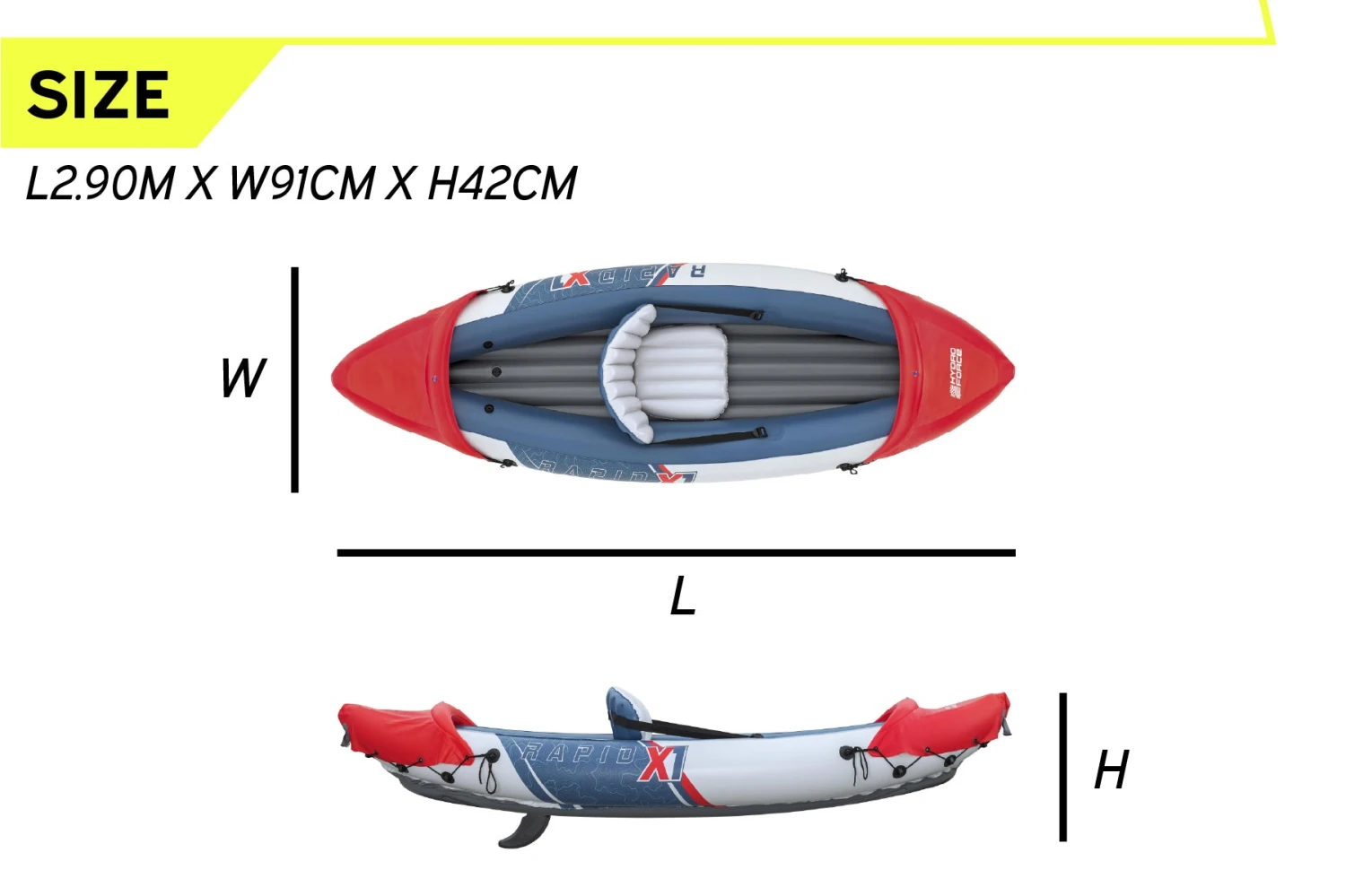 The Rapid X1 set also includes a carry bag for the kayak, a paddle, pump and fins, so you can easily take it on many adventures.