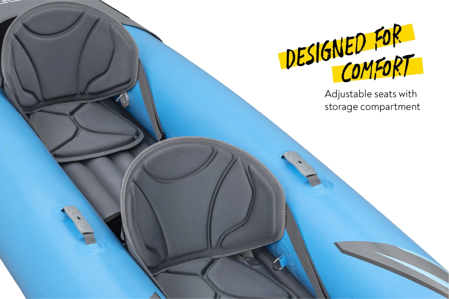 Let the adventure begin with the Hydro-Force™ Surge Elite™ X2 Kayak. Designed for two adults, this kayak features a form-fitted construction that prevents water from entering the cockpit as you paddle along. ///