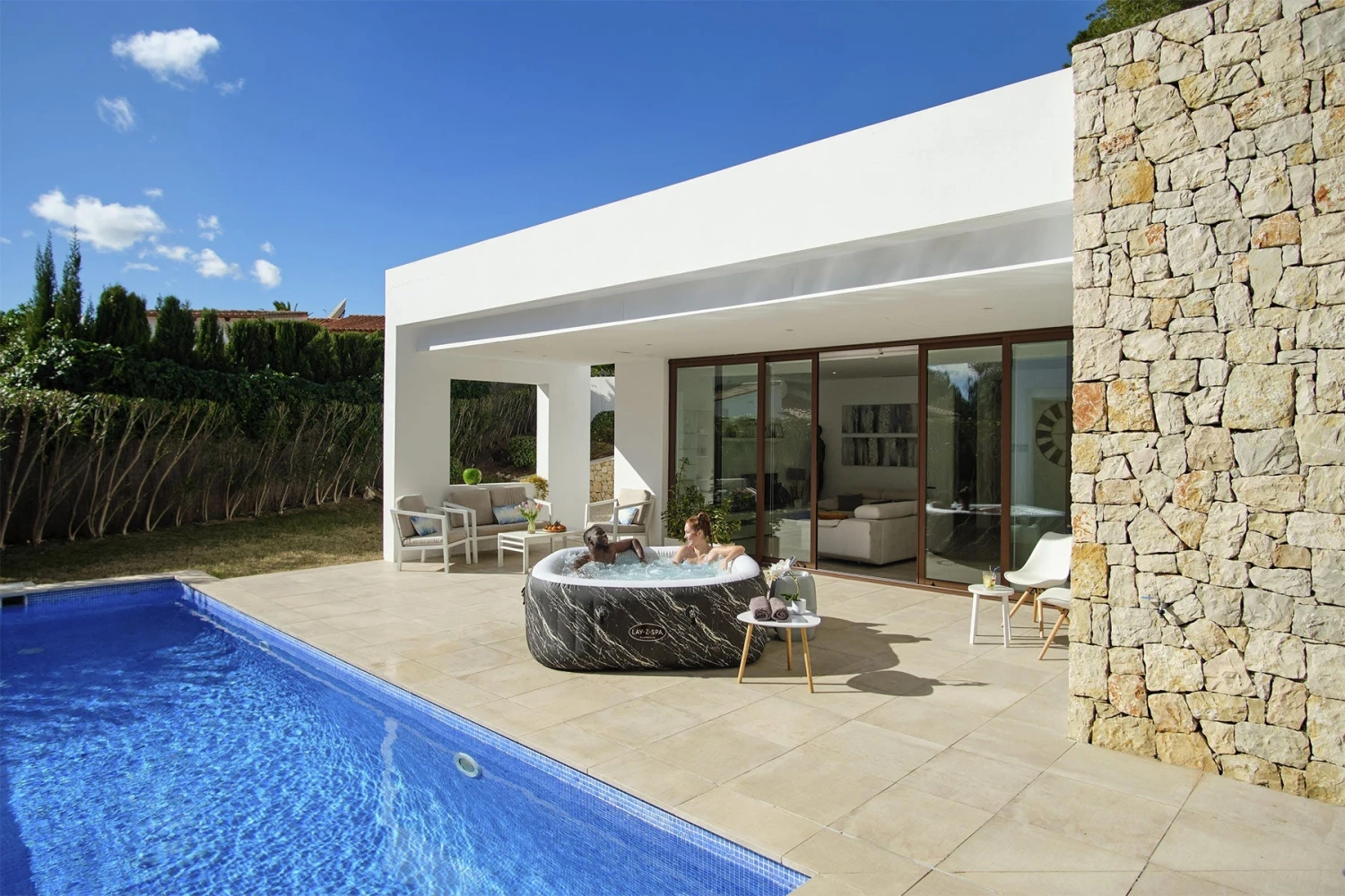 Indulge in stylish relaxation, immerse yourself in colourful illumination and experience positive health & wellbeing benefits with the Lay-Z-Spa Florence Luxe AirJet™, a unique inflatable hot tub for up to 6 people. ///