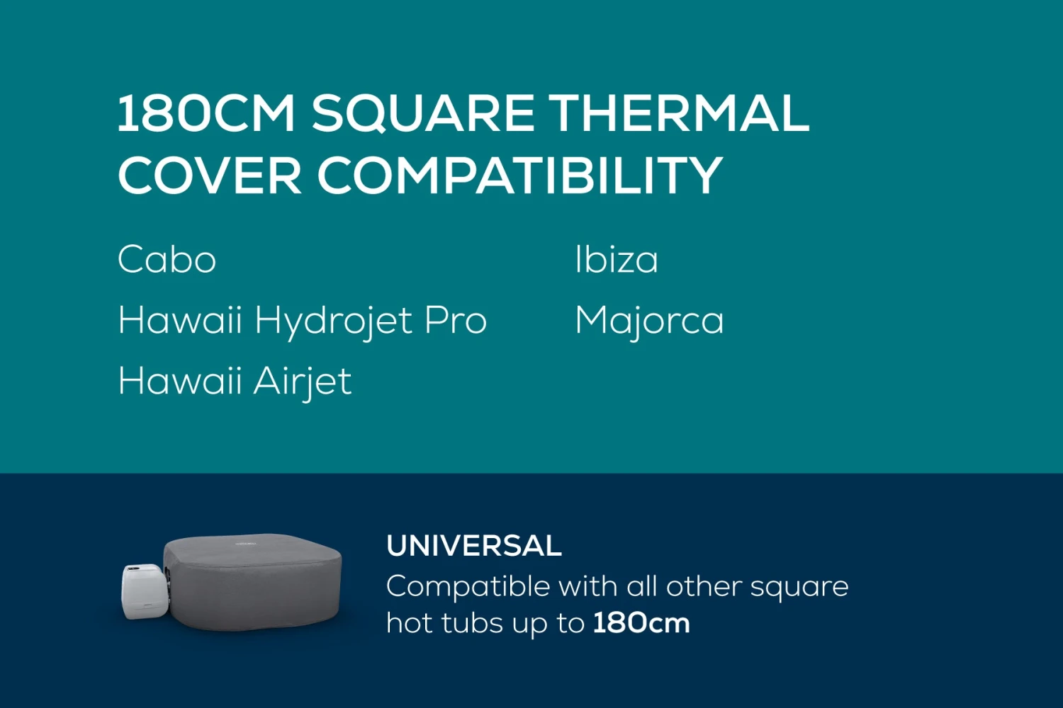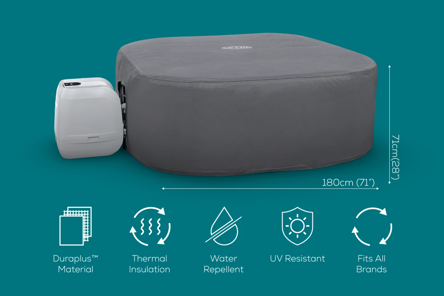 - Suitable for all square inflatable hot tubs up to 180 cm
