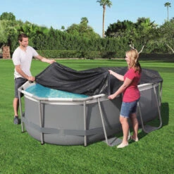 Bestway 16ft X 8ft X 48in Ark Grey Rectangular Steel Pro Max Above Ground Pool Set