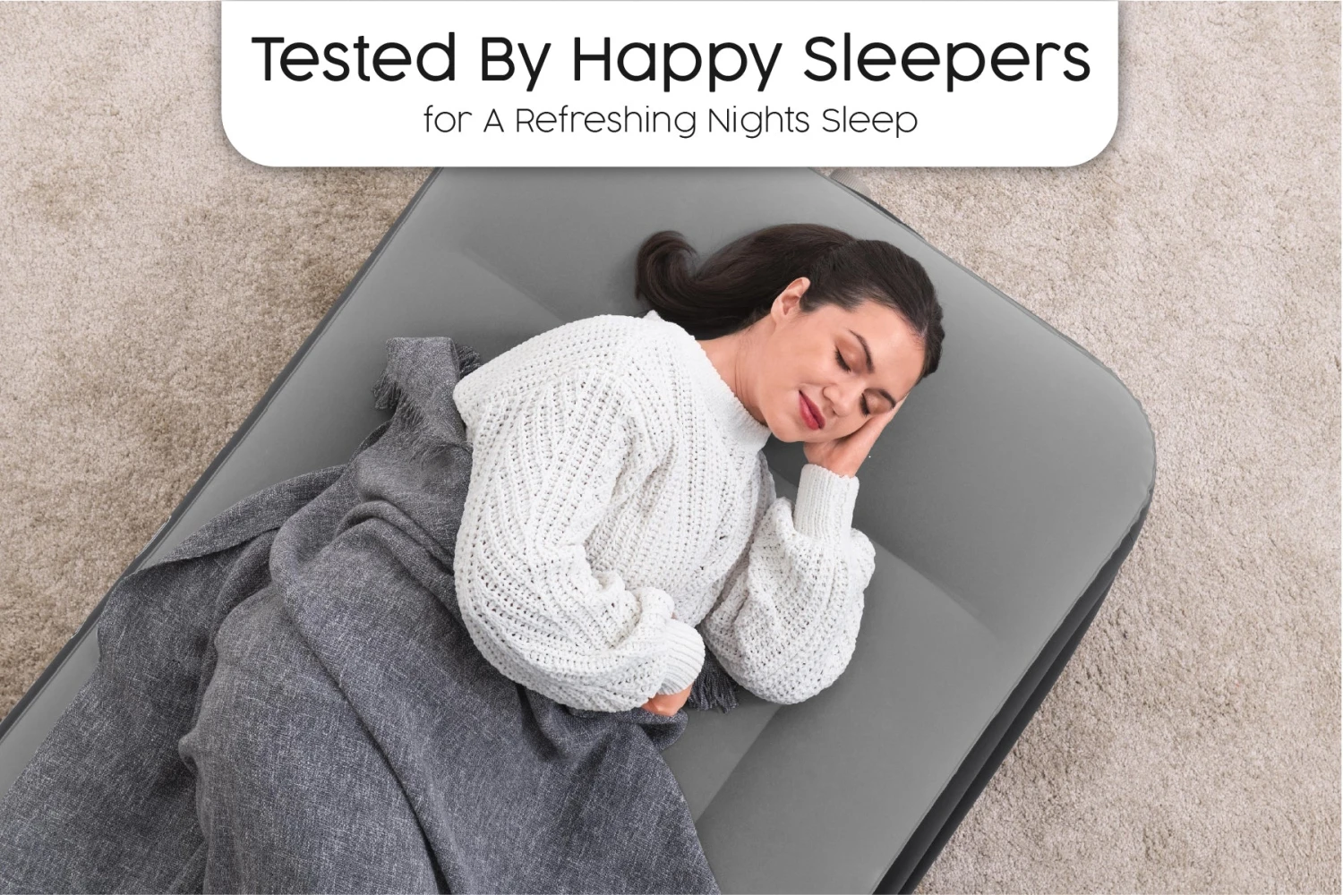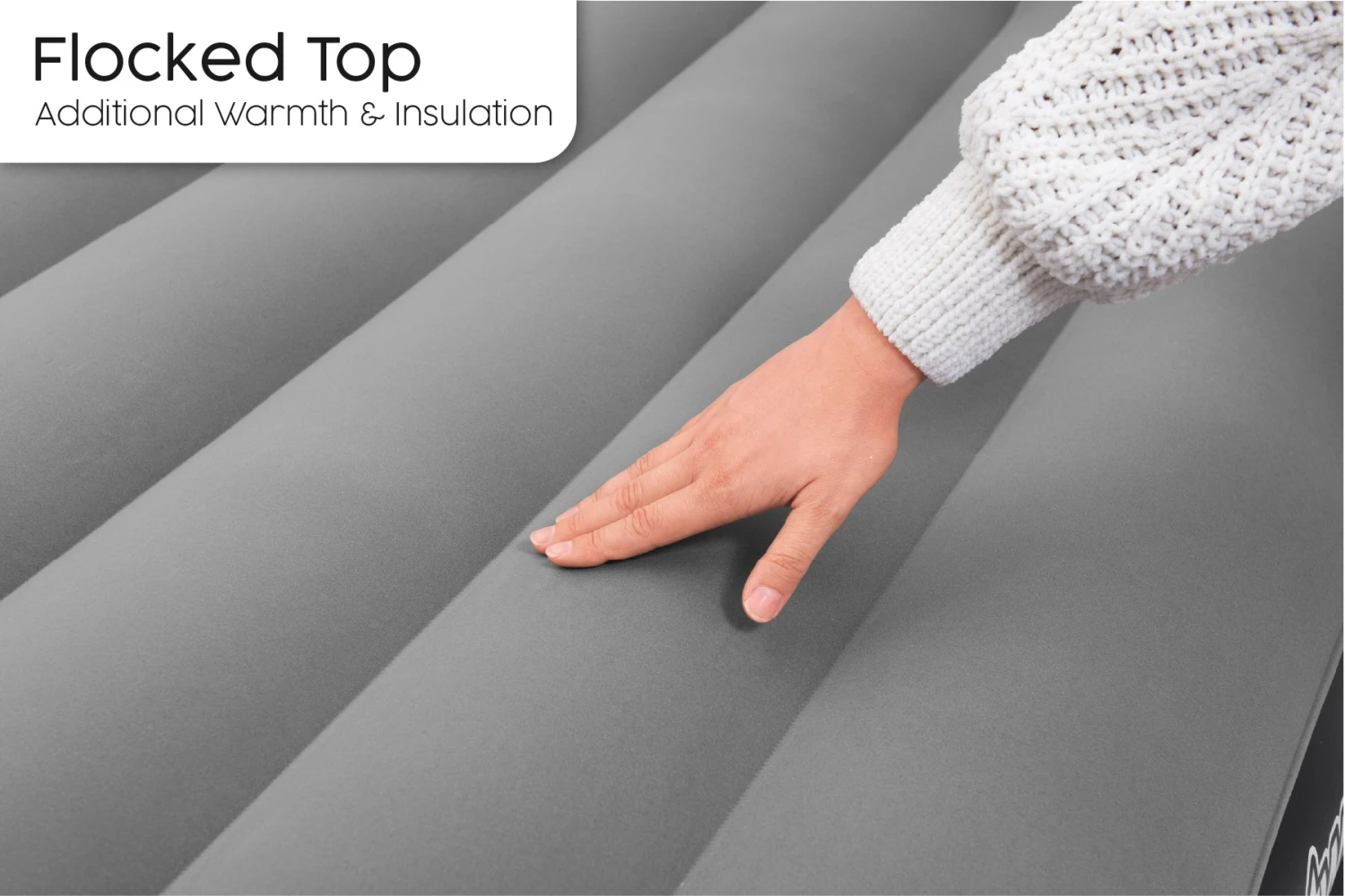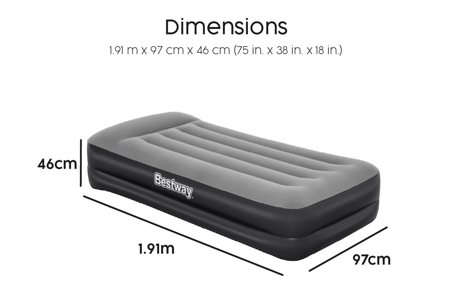 - The Bestway Tritech Single Airbed features a built-in pillow and a velvet-like, flocked sleeping surface, engineered for firmness to minimise air loss throughout the night, ensuring essential comfort for a great night’s sleep